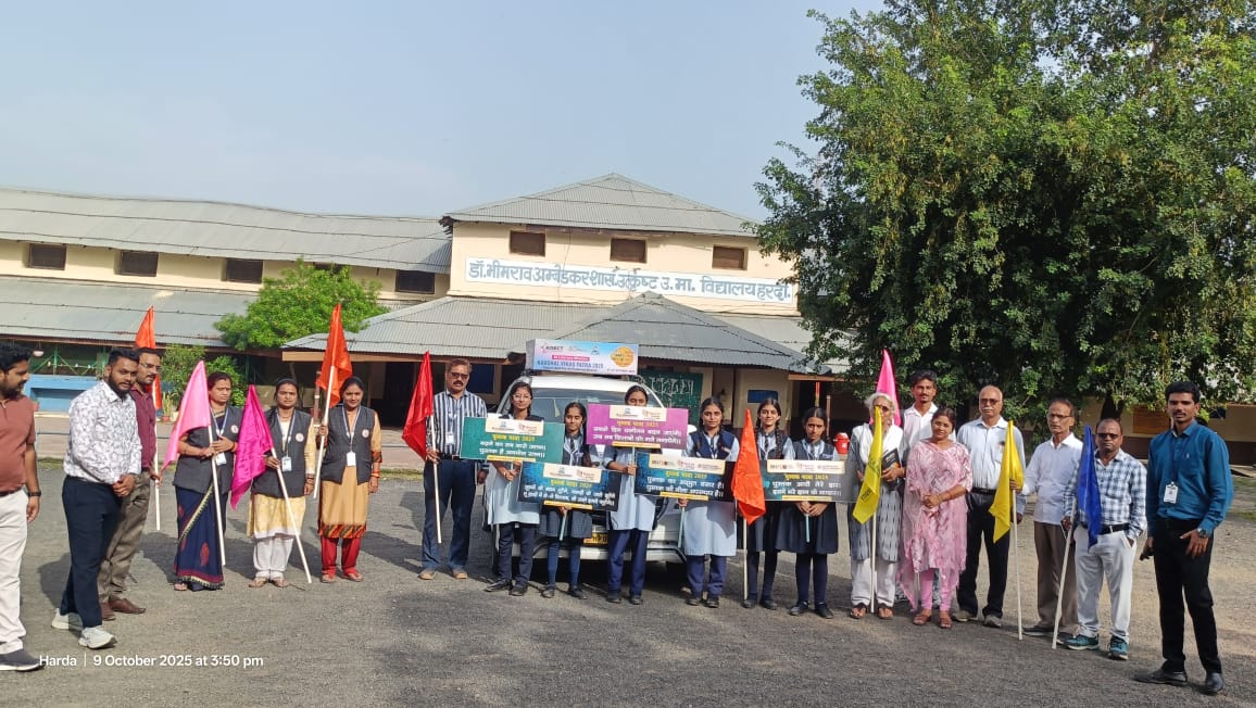 मिशन हैप्पी हरदा के अंतर्गत दिनांक 09/10/2025 को पुस्तक यात्रा का आयोजन किया गया। इस पुस्तक यात्रा का उद्देश्य विद्यार्थियों एवं आम नागरिकों में पुस्तकों के प्रति जागरूकता बढ़ाना तथा अध्ययन संस्कृति को प्रोत्साहित करना था। यात्रा के माध्यम से यह संदेश दिया गया कि पुस्तकें केवल ज्ञान का स्रोत ही नहीं, बल्कि व्यक्तित्व विकास, नैतिक मूल्यों और सकारात्मक सोच का आधार भी हैं।